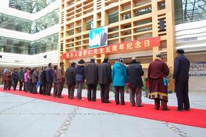 尤为感人的是,当天虽然大雪纷飞,但也没有阻挡住黄羊川当地父老乡亲和中小学学生来纪念温创办人的脚步,他们自发地来到会议中心,在温先生遗像前深深鞠躬,感谢和怀念这位给黄羊川带来巨变和希望的和蔼可亲的台湾企业家。