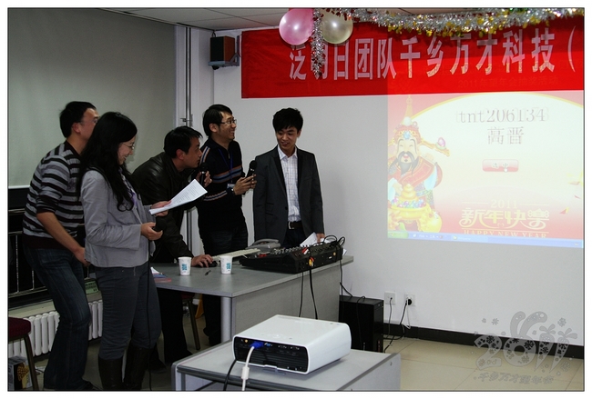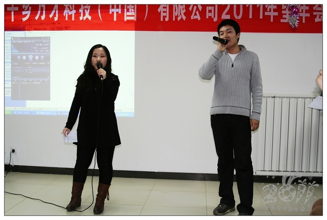 2011年1月12日(文/魏杉)千乡万才科技 (中国)有限公司2011年度望年会在天津分公司9层如期举行。近二百名员工齐聚一堂共同欢度一年一度的望年会。晚上18点30分晚会在美工部同仁精心制作的Flash拜年动画中拉开序幕。在主持人简短的开场词后,请上了千乡万才副总经理陈慧致新春贺词。陈副总说,千乡万才的发展离不开公司全体同仁的努力,在刚刚过去的2010年中我们看到了CISS事业的茁壮成长;看到了西部事业的硕果累累;看到了很多新的面孔加入了千乡万才的大家庭;也看到了很多新人在这一年里迅速成长为公司的中坚力量,为推动CISS跨网通的产品化、商品化贡献着自己的力量。