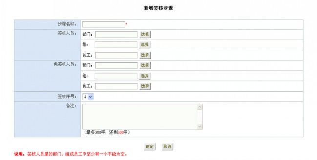 3、 免签人员:设定该签核步骤下无需签核的人员范围可设定相关部门、组,也可设定具体人员范围。如员工提交的申请单,需要经理、总经理签核,经理提交的申请单只需要总经理签核,那么签核步骤1为经理签核,签核人为经理级主管,则该步骤的免签人为经理级主管和总经理;