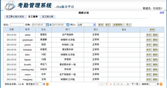1、 员工排班:该标签下显示所有员工班次的详细页面;