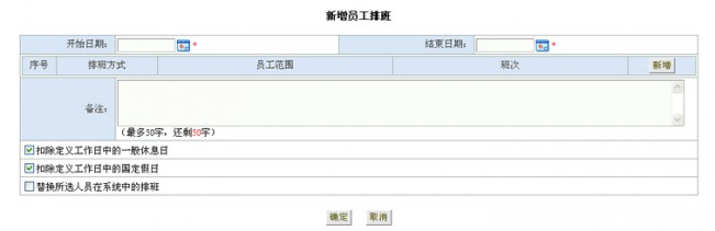 4、 员工范围:该排班计划的应用部门、组或者人员;