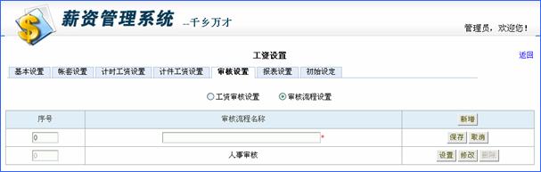 1) 此处设定的审核流程将作为备选项让需要审核的帐套和计时/计件工资选择;