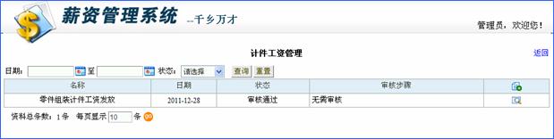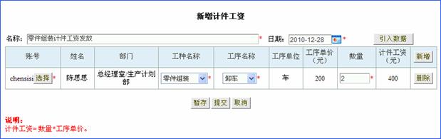 用途:财务人员在此标签下管理企业涉及到的计件工资。