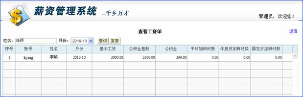 1、 工资表发布后,如有权限,每位员工可以在这里查看自己的工资单,主管可以查看下属的工资单;
