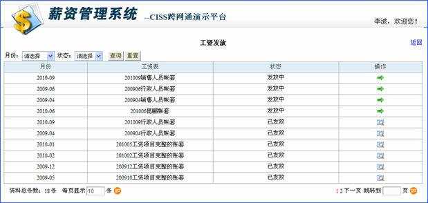 2、 点击发放图标进入薪资发放界面: