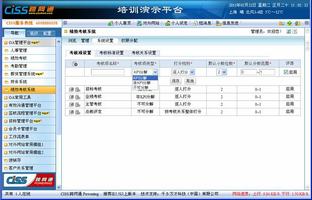 1) “KPI分解”:该类型的考核项,由每位员工在每月根据任务情况分解自己的考核指标;