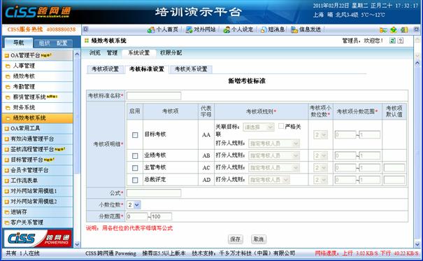 4、 “分数范围”:规定该考核标准的分数范围,支持负数分值输入;