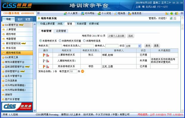 1、 选择需要开通的考核月份,点击按钮,系统中存在的所有的考核关系都会做相应的开通操作,开通不成功的考核关系会有相应的原因提示;