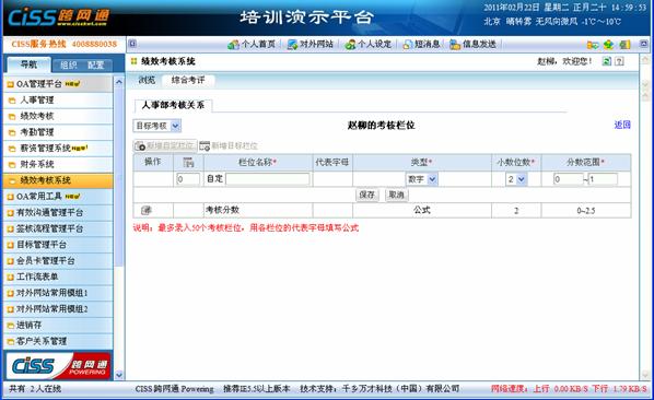用途:被考核人针对KPI分解的考核项进行自定义考核栏位。