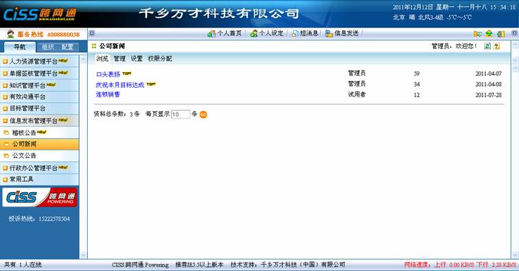 产品咨询:400-812-8178首页CISS跨网通下载专区选型顾问CISS知识库动态合作伙伴售后服务关于我们客户留言 CISS知识库 关注CISS新浪腾讯网易搜狐 CISS知识库当前位置:首页>CISS知识库>OA之知识管理平台