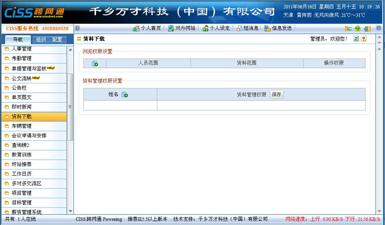 一、 初次使用资料下载模组,管理员所看到的界面如下图所示:
