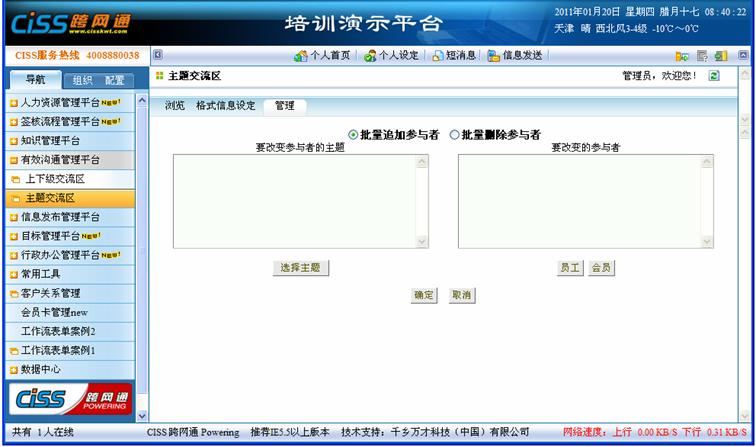 用途:对系统主题交流区的参与者进行批量增加/删除。