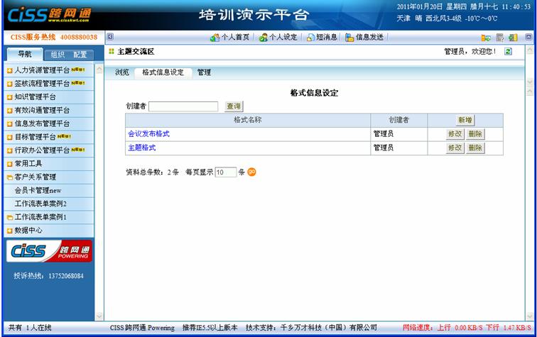 用途:建立多套文本格式,不同的交流主题套用不同的格式,方便参与者套用固定好的格式进行内容编辑,实现交流信息格式化管理;已建立好的格式信息,可用于新增交流主题时“格式信息”栏位的选择。
