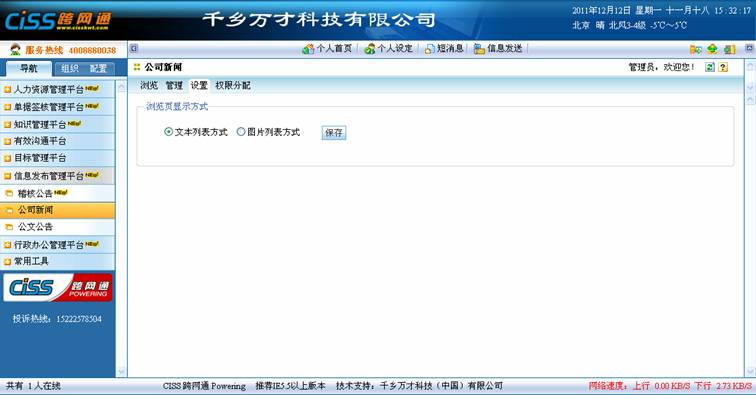 管理员可以在该Tag下设置浏览页面的显示方式,系统提供两种显示方式,一种为文本列表方式,一种为图片列表方式。