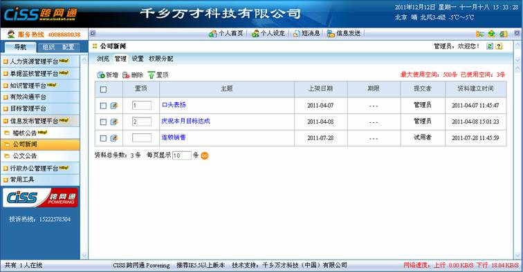 产品咨询:400-812-8178首页CISS跨网通下载专区选型顾问CISS知识库动态合作伙伴售后服务关于我们客户留言 CISS知识库 关注CISS新浪腾讯网易搜狐 CISS知识库当前位置:首页>CISS知识库>OA之信息发布管理平台
