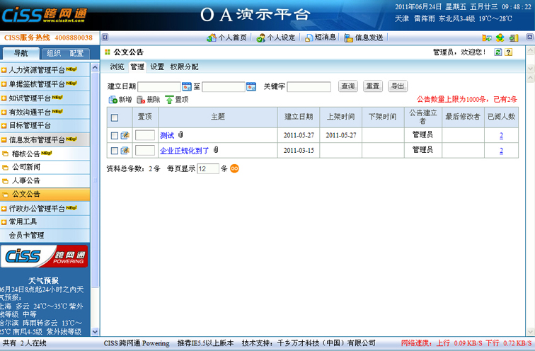 产品咨询:400-812-8178首页CISS跨网通下载专区选型顾问CISS知识库动态合作伙伴售后服务关于我们客户留言 CISS知识库 关注CISS新浪腾讯网易搜狐 CISS知识库当前位置:首页>CISS知识库>OA之信息发布管理平台