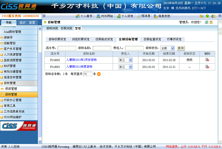 1、  目标的责任人,可以对目标进行责任人的变更,责任人下拉列表显示【目标权限设定】tag“以下人员有权限设定目标”中的人员;