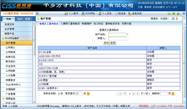 查询榜模组可以显示在对外网站中,对外网站中查询榜模组可以根据员工专区所设置的查询格式和相应的查询格式的权限进行查询。