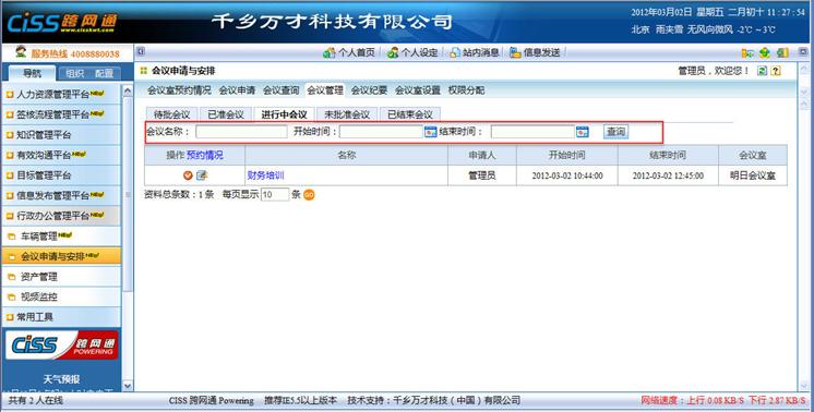 管理员可以根据需要在这里通过会议名称、开始时间、结束时间进行信息的查询。
