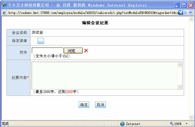 点击“编辑会议纪要”图标,可以弹出会议纪要填写页面。如下图: