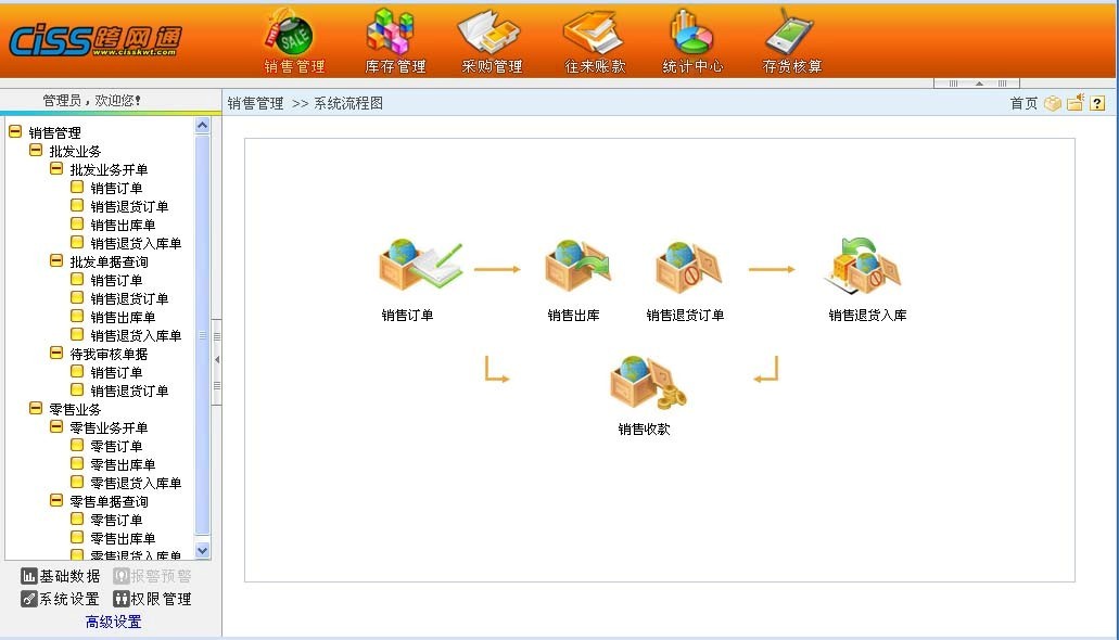 在我们系统中,销售业务中分为传统的批发业务、零售业务、委托代销业务、借出业务及获赠业务。以传统批发业务为例,先下销售订单,接着销售出库单过账,收款,后续当商品出现质量等问题时涉及退货业务。退货业务中可以先下退货订单,再办理商品的退货业务。