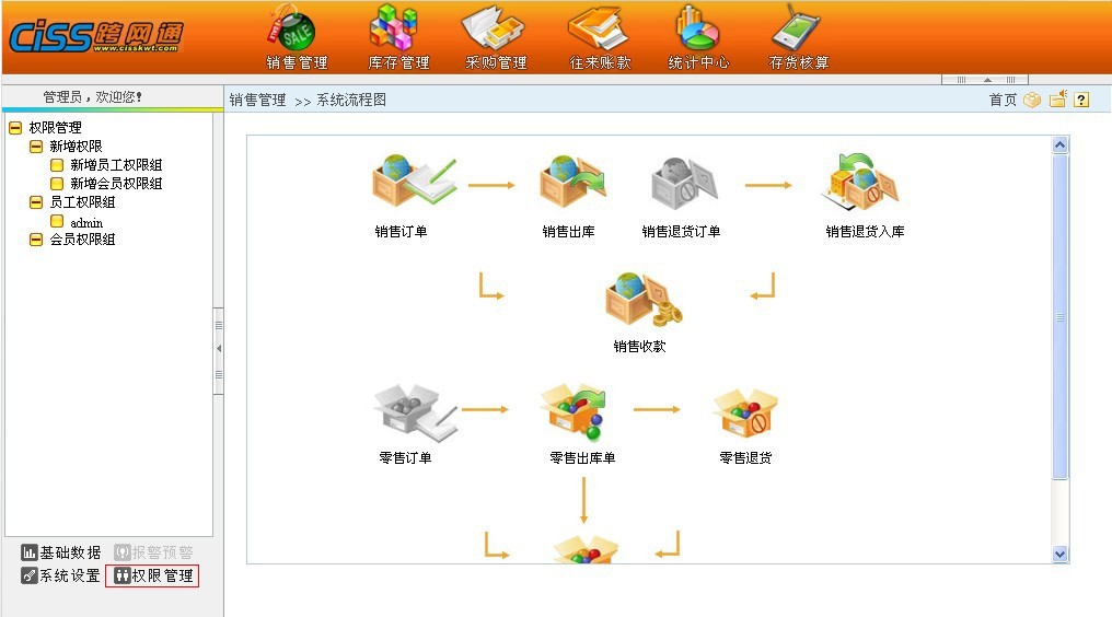 增加公司内部如采购人员、库管人员、销售人员、财务人员和管理层的权限。