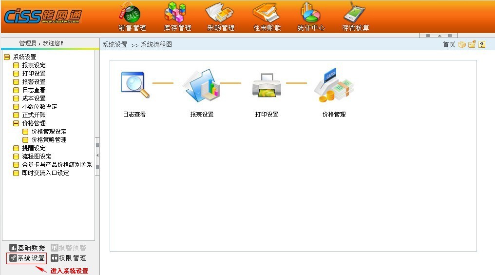 系统设置中,您可以新增删除报表,定义单据打印样式,设置报警类型,设置成本异常时系统此时提供的产品成本值来源及系统中小数位数的数值等规则设置。
