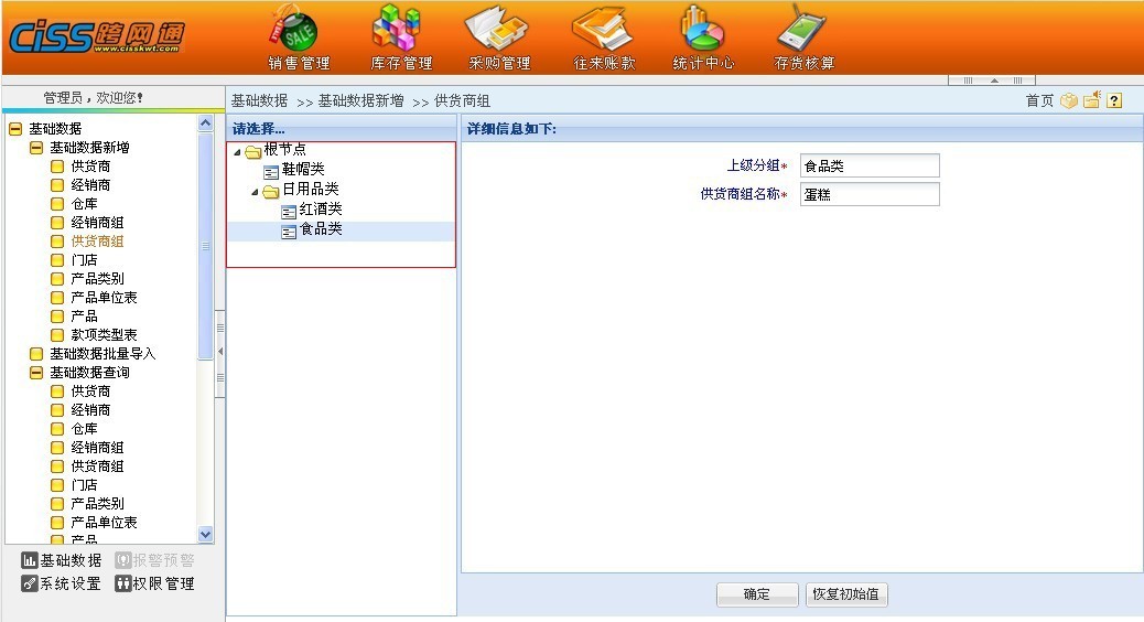 (1). 供货商组:建立供货商组,以后可以将供货商分属在不同的供货商组中进行管理。供货商组可以分多层,同层可以有多个供货商组。