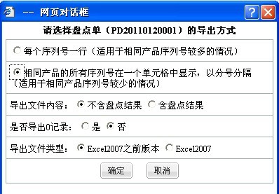 (3). 导出文件内容:对于导出的文件提供不含盘点结果和含盘点结果两种情况。不含盘点结果的情况是在生成盘点单之后,实际盘点实物之前使用。含盘点结果的情况是在盘点工作全部完成之后需要保留此次盘点单时使用。
