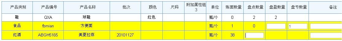 3) 盘亏情况:盘亏产品的盘点情况栏位输入任意字符。