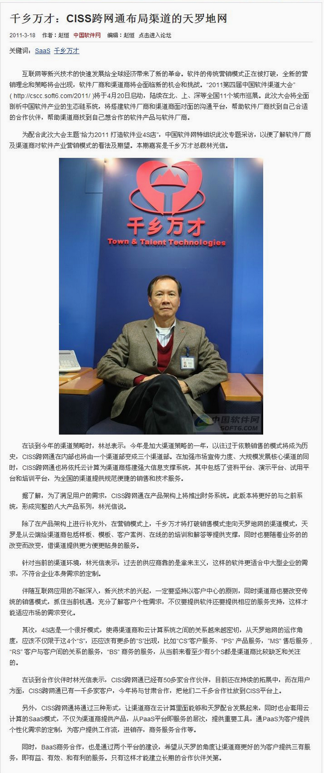 CISS跨网通冲破传统管理层层桎梏——中国大陆SaaS服务平台之大成者