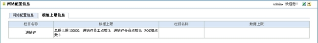 CISS跨网通进销存系统将原来的限制人数信息细化分为:限制员工人数和限制会员人数两部分。在配置=》网站配置信息=》模组上限信息中可以看到进销存系统相应的员工和会员人数。