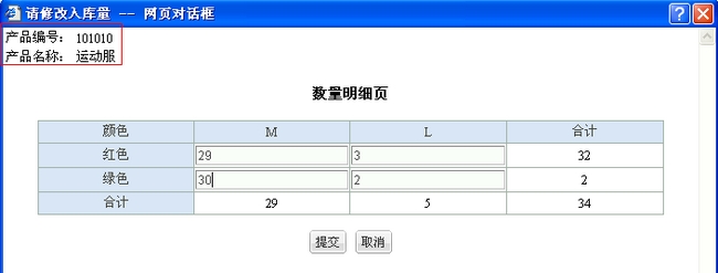 CISS跨网通进销存系统中产品有附加属性时,在单据明细页面输入数量时,数量输入框的附加属性弹出页左上角显示该明细产品的产品名称及产品编号。
