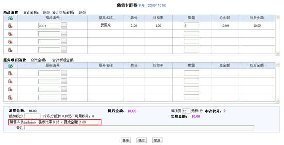 会员管理模组中为会员卡指定销售人员,在系统设置中启用提成设置并设定提成比率,那么会员在使用储值卡、折扣卡或拥有储值卡功能的组合卡进行消费或退货时,会员管理模组会根据提成金额=消费金额*提成比率这个公式计算出提成金额,而且此处的提成金额允许手动进行修改。