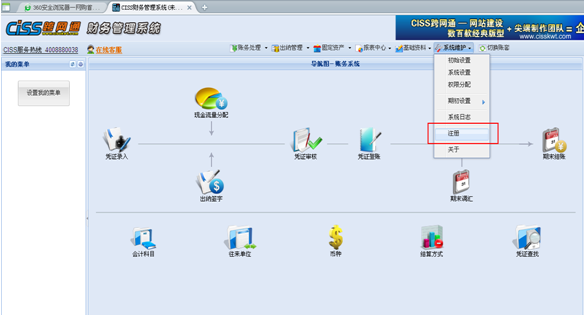 CISS财务系统安装版增加license(序列号)管理功能,未注册用户可以试用30天,30天后必须注册,否则不能再次使用系统。