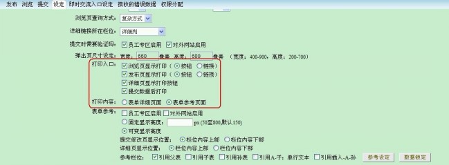表单设定页增加“打印入口”和“打印内容”的设置,见下图所示。