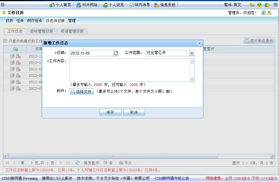 为了更好的满足客户的需求,工作日历模组中的工作日志增加了单附件上传的功能。客户可在工作日志新增修改页上传附件。在日志列表查看上传的附件。