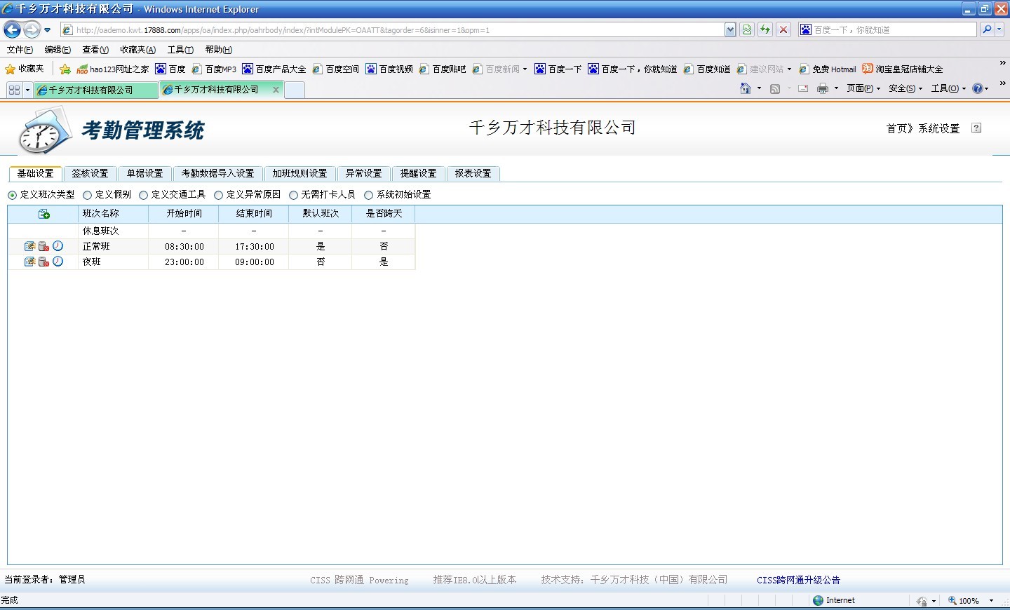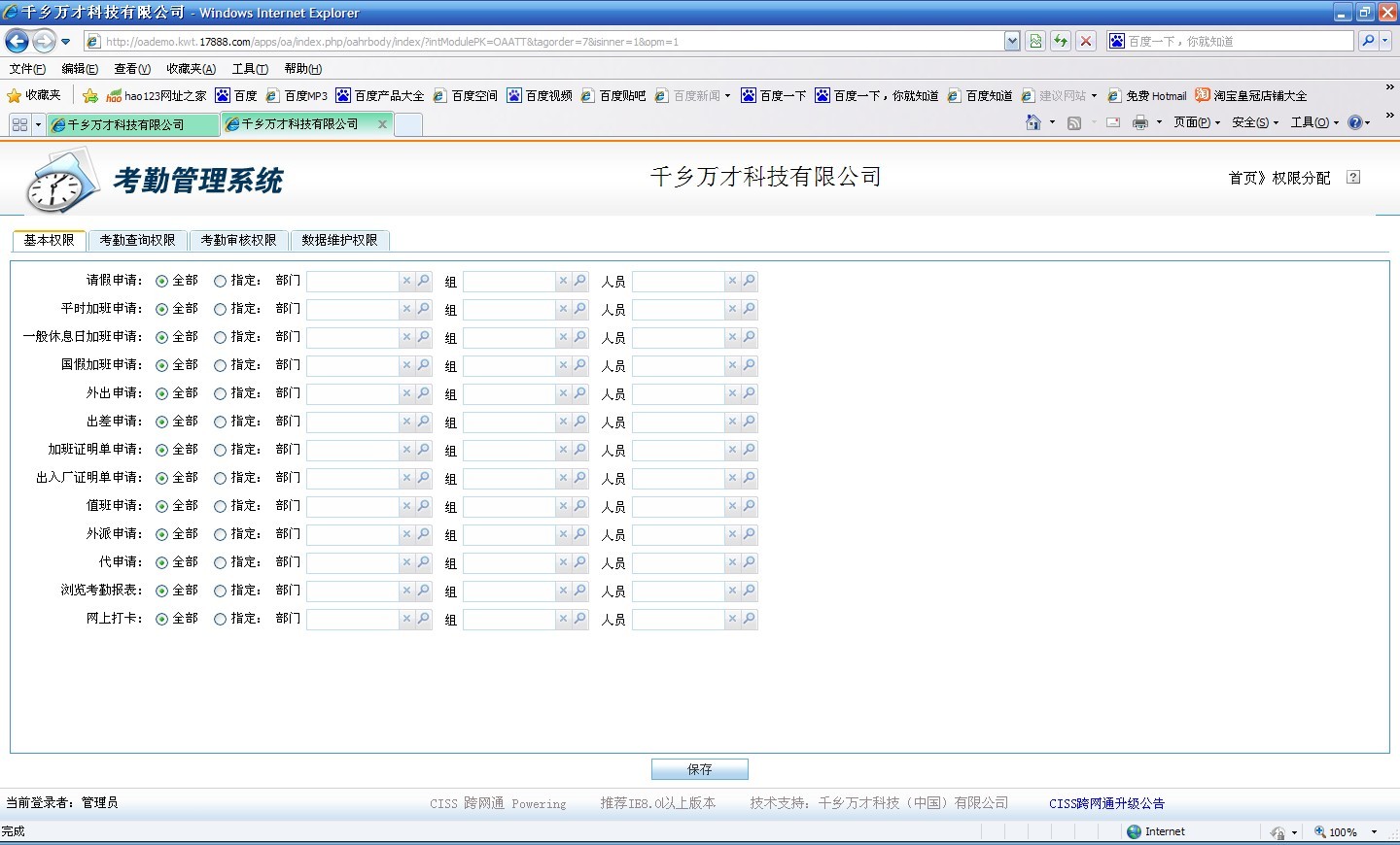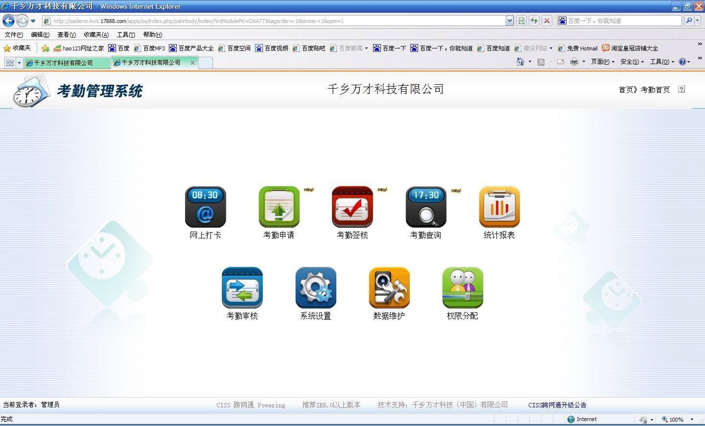 CISS跨网通对原考勤管理系统升版为考勤管理系统3.0版。