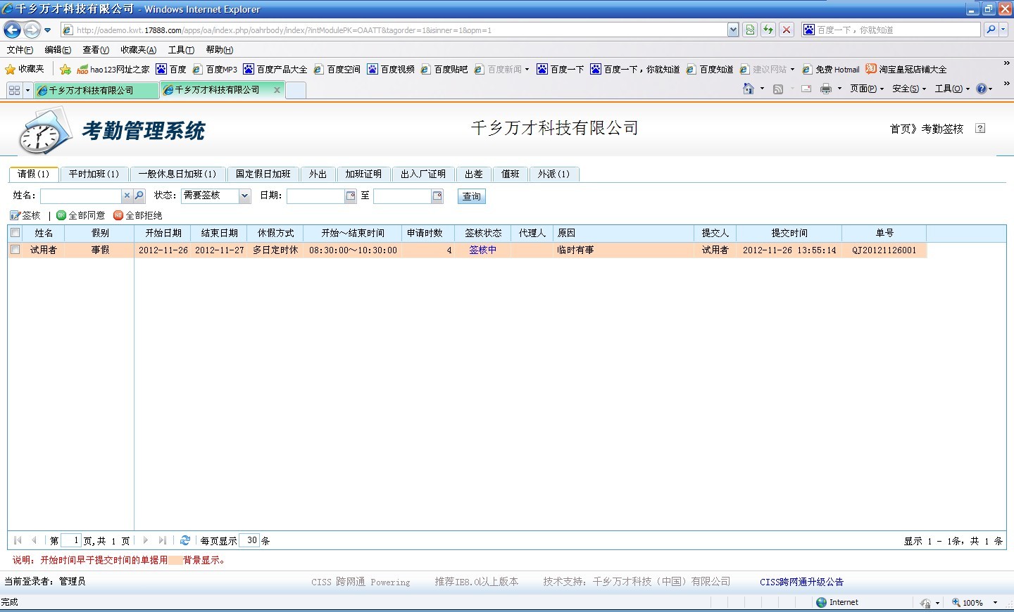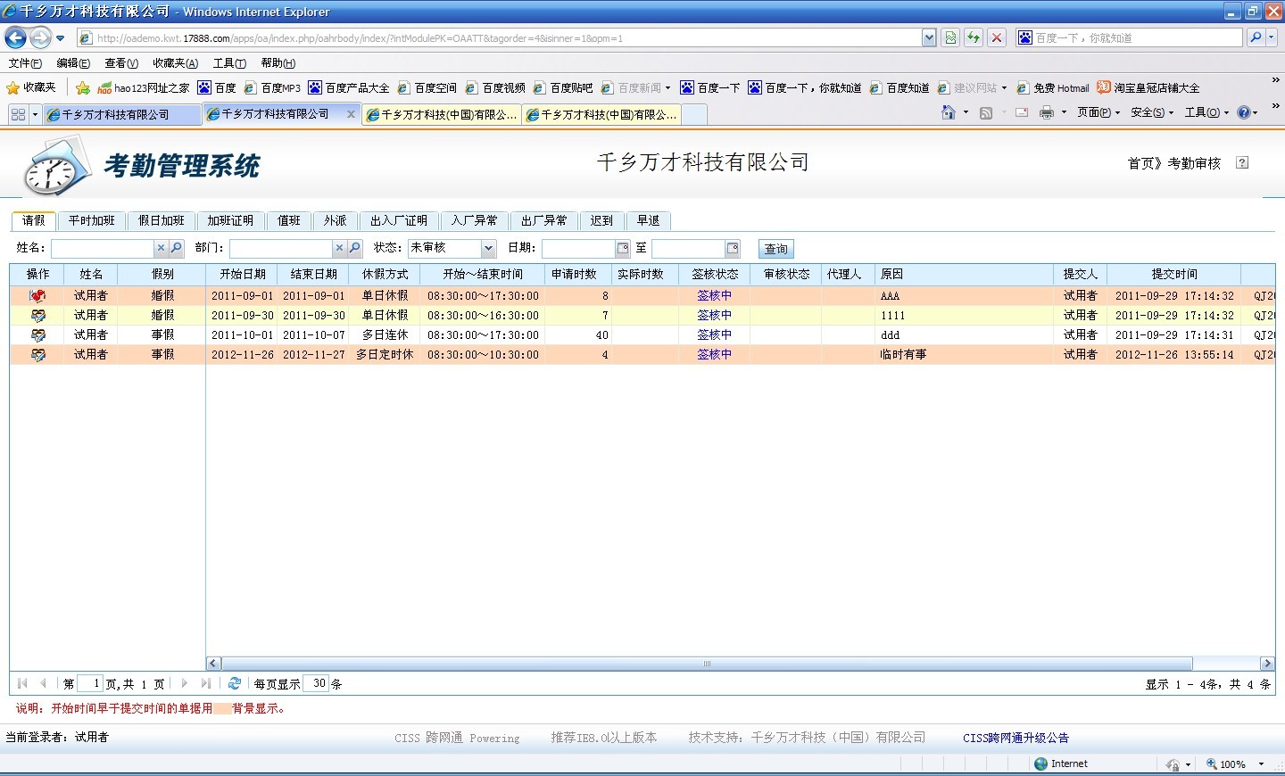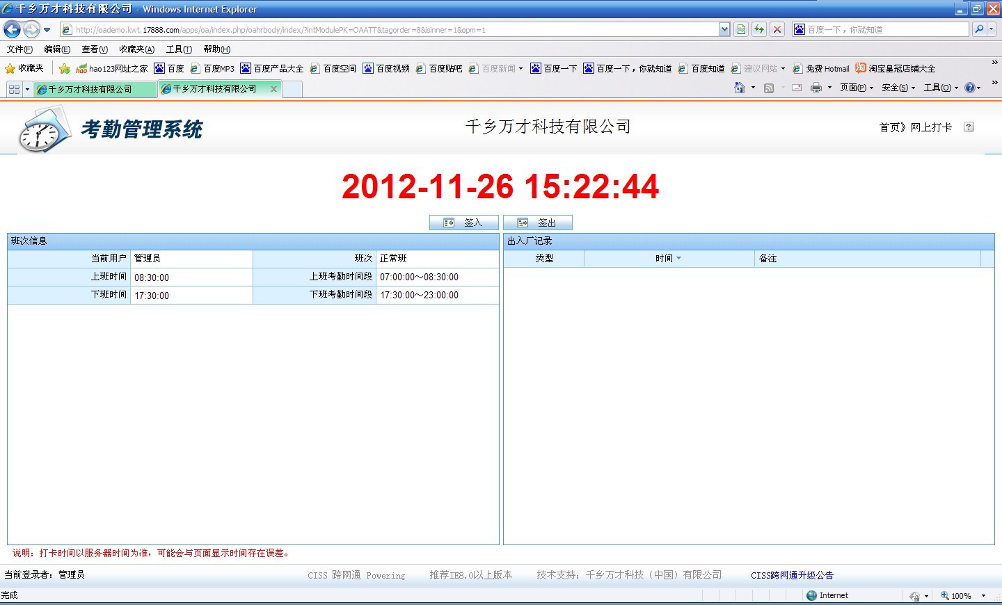 CISS跨网通对原考勤管理系统升版为考勤管理系统3.0版。