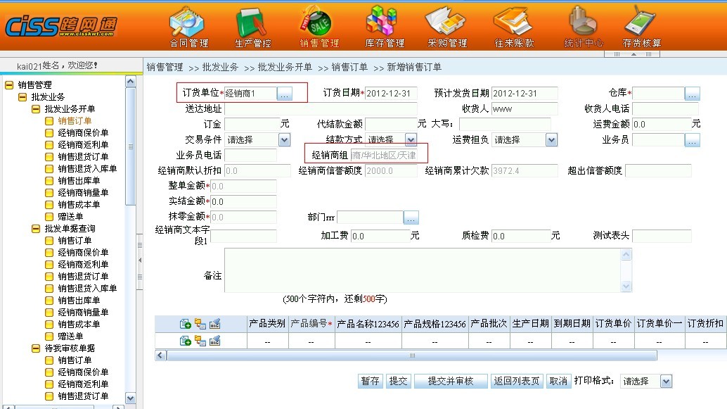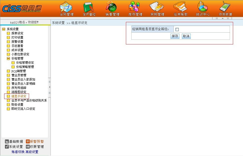 CISS跨网通进销存系统,单据中选择经销商后原来只能显示末级经销商组名称,此次功能改善可以显示全部经销商组路径,方便客户查看。