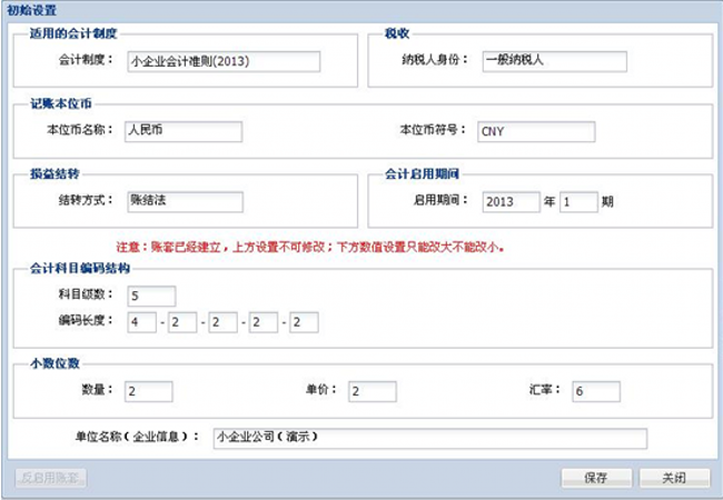 1、账套建立之后,可以在初始设置页修改会计科目编码结构和小数位数设置,但仅允许由小到大的修改。