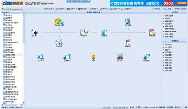 CISS财务软件版发布啦~~,为了方便广大用户使用,CISS财务软件版功能增加了初始设置页建立账套后部分栏位可修改并增加了单位名称(企业信息)栏位;试用版账套上限提高为10个;凭证新增页增加大写金额显示等,同时财务软件增加了一个新版的版本——财务增强版,增强版是在企业版的基础上增加了薪资管理功能。