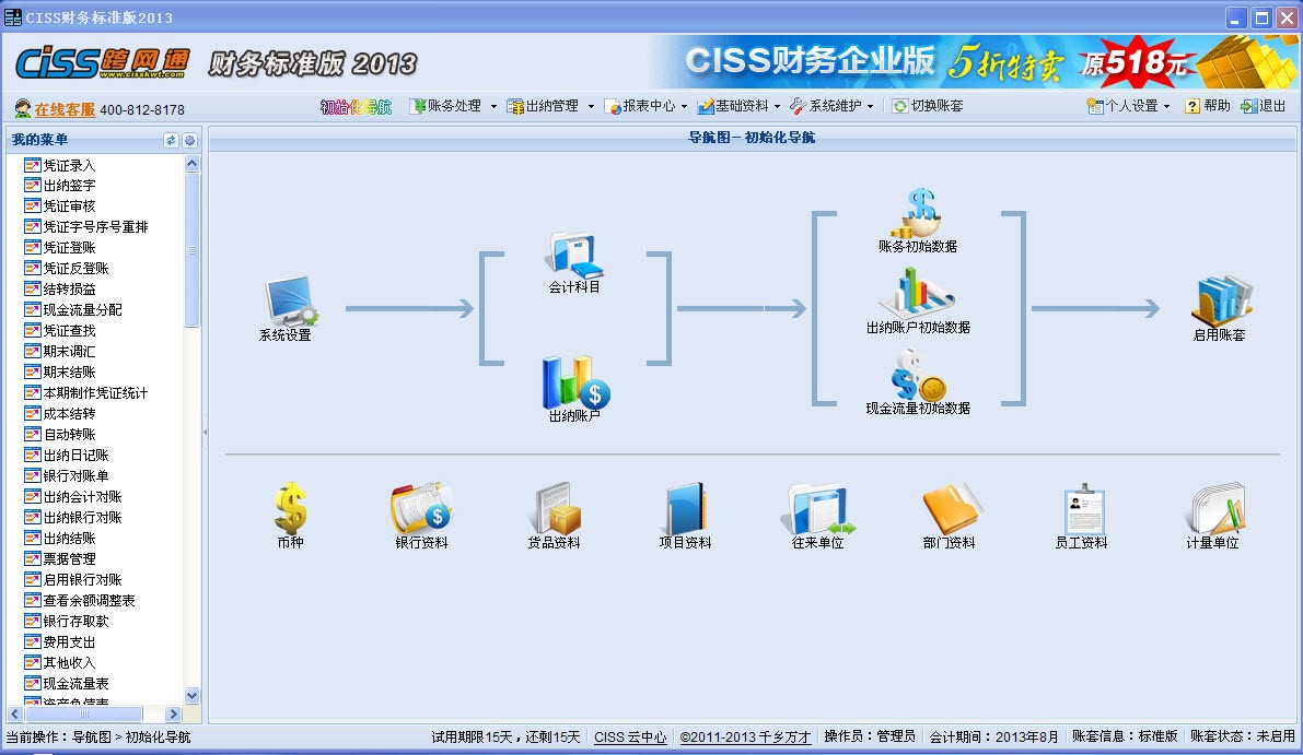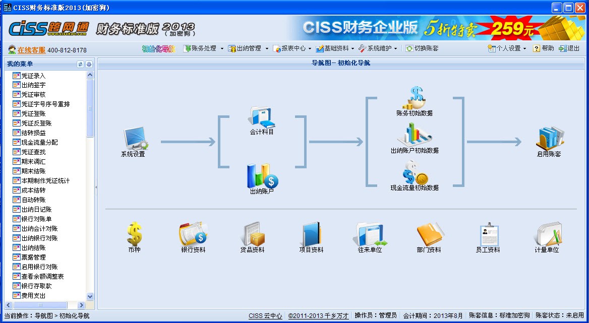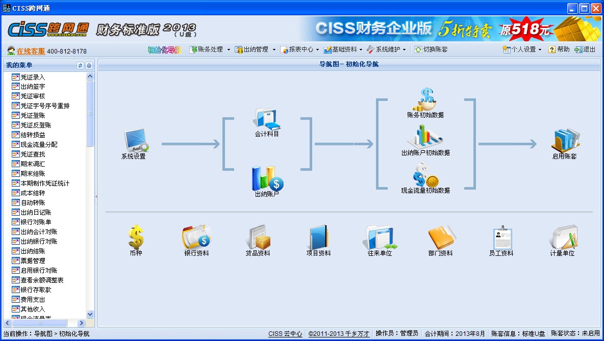 为了满足不同用户的业务需求,我公司近日推出了CISS跨网通财务软件标准版ver1.0,标准版是在企业版的基础上去掉了固定资产相关的功能,同时标准版根据使用介质不同,又分为:序列号方式、U盘方式和加密狗方式。