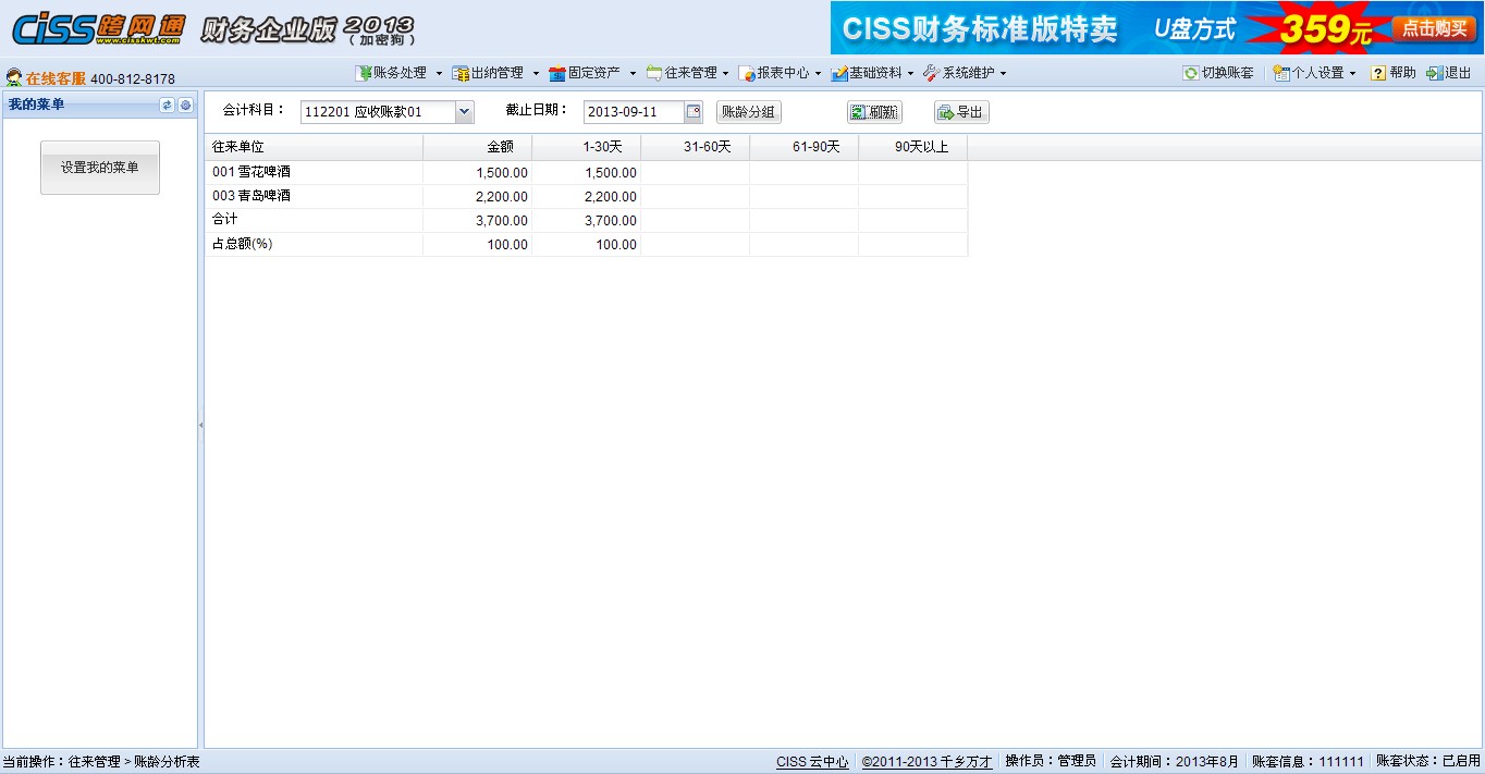 【往来管理】->账龄分析表界面如下:
