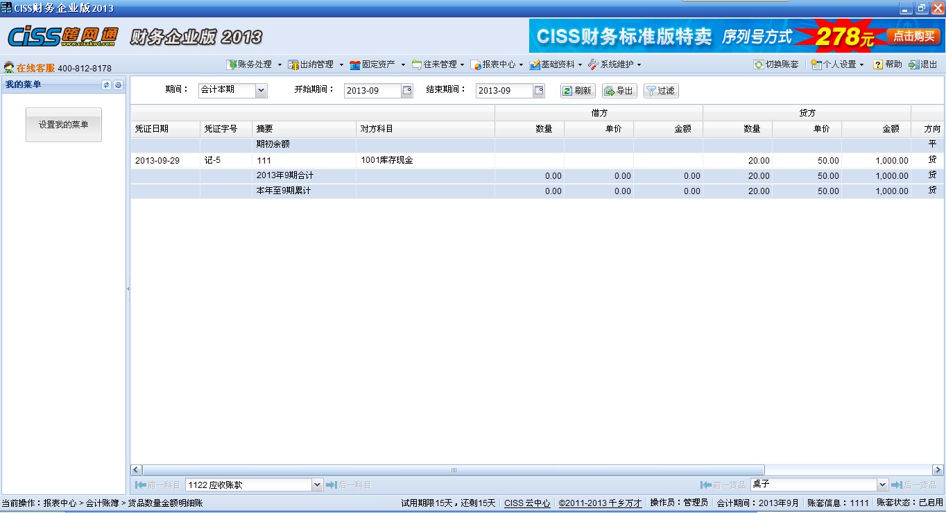 CISS跨网通财务软件企业版Ver3.5和CISS跨网通财务软件标准版Ver1.3于近日发布,为了更好地帮助企业用户管理货品数量金额,我们在CISS跨网通财务软件企业版Ver3.5和标准版Ver1.3中增加了货品数量金额总账和明细账两张报表:通过这两张报表您可以查看同时启用了辅助核算货品和数量的会计科目的相关数据。除此之外还对以下功能做了改进: