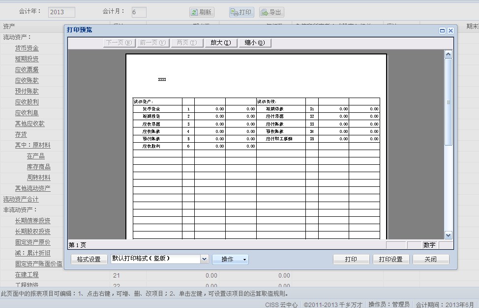 1、现金流量、资产负债、利润表、科目余额汇总表、会计账簿里的总分类账和明细分类账增加页面打印功能;