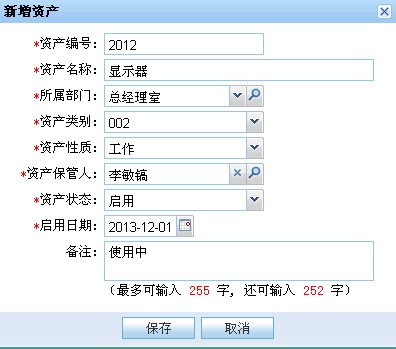 CISS跨网通OA办公系统,资产管理新增页面