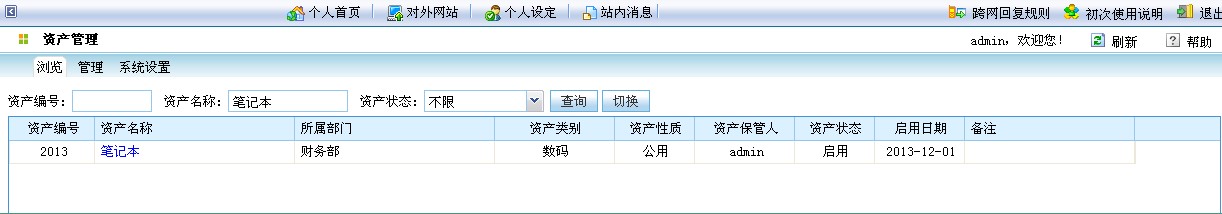 CISS跨网通OA办公系统,资产管理浏览页面