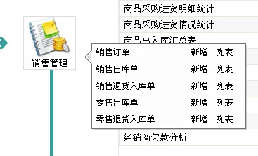 3)销售管理:处理与企业、零售销售活动相关的业务,包含销售订单、销售出库单、销售退货入库单、零售出库单、零售退货入库单。