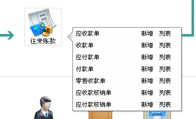 4)往来账款管理:处理企业、门店收、付款等业务,包含应付款单、付款单、应收款单、收款单、零售收款单。
